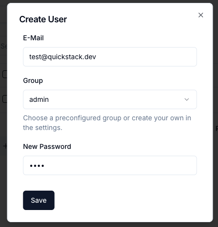 QuickStack's access control is organized into Users, Groups, and Permissions: