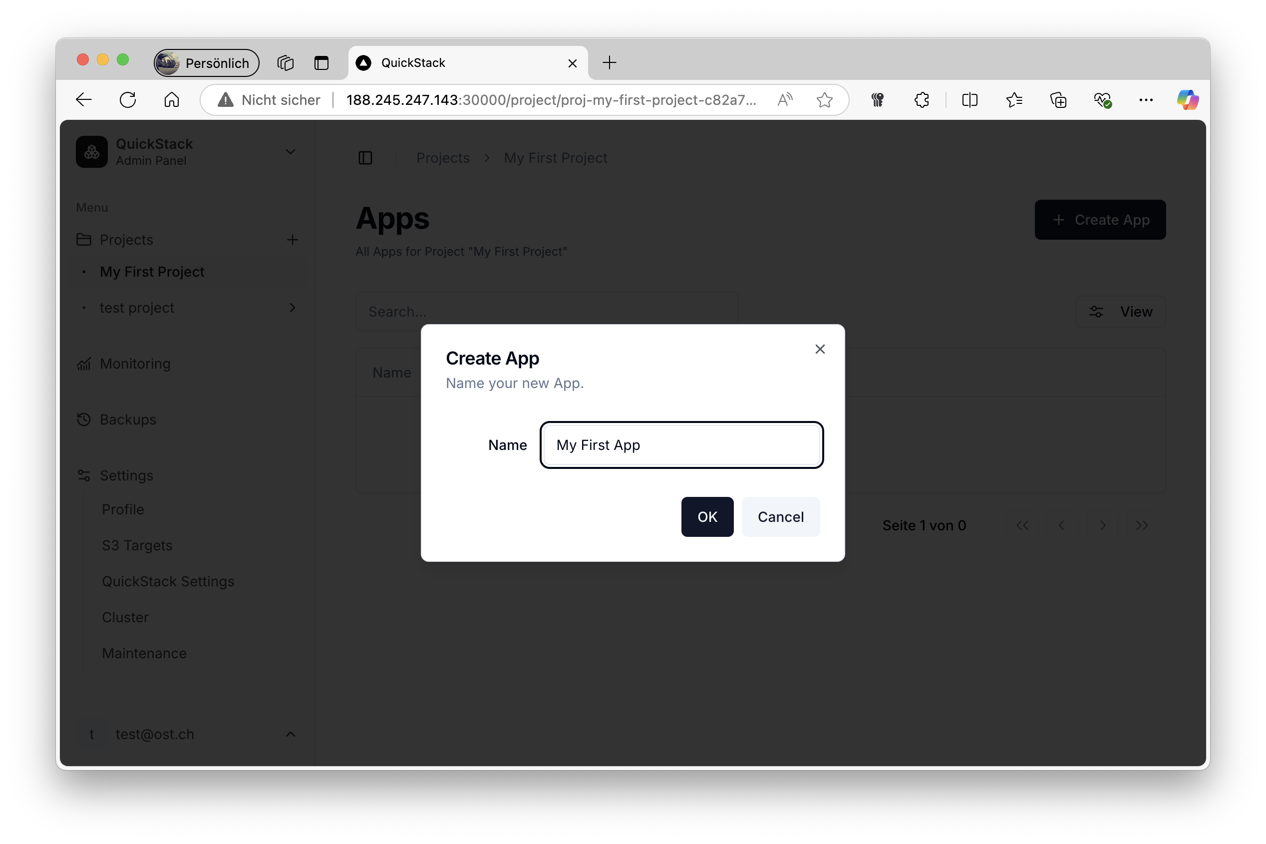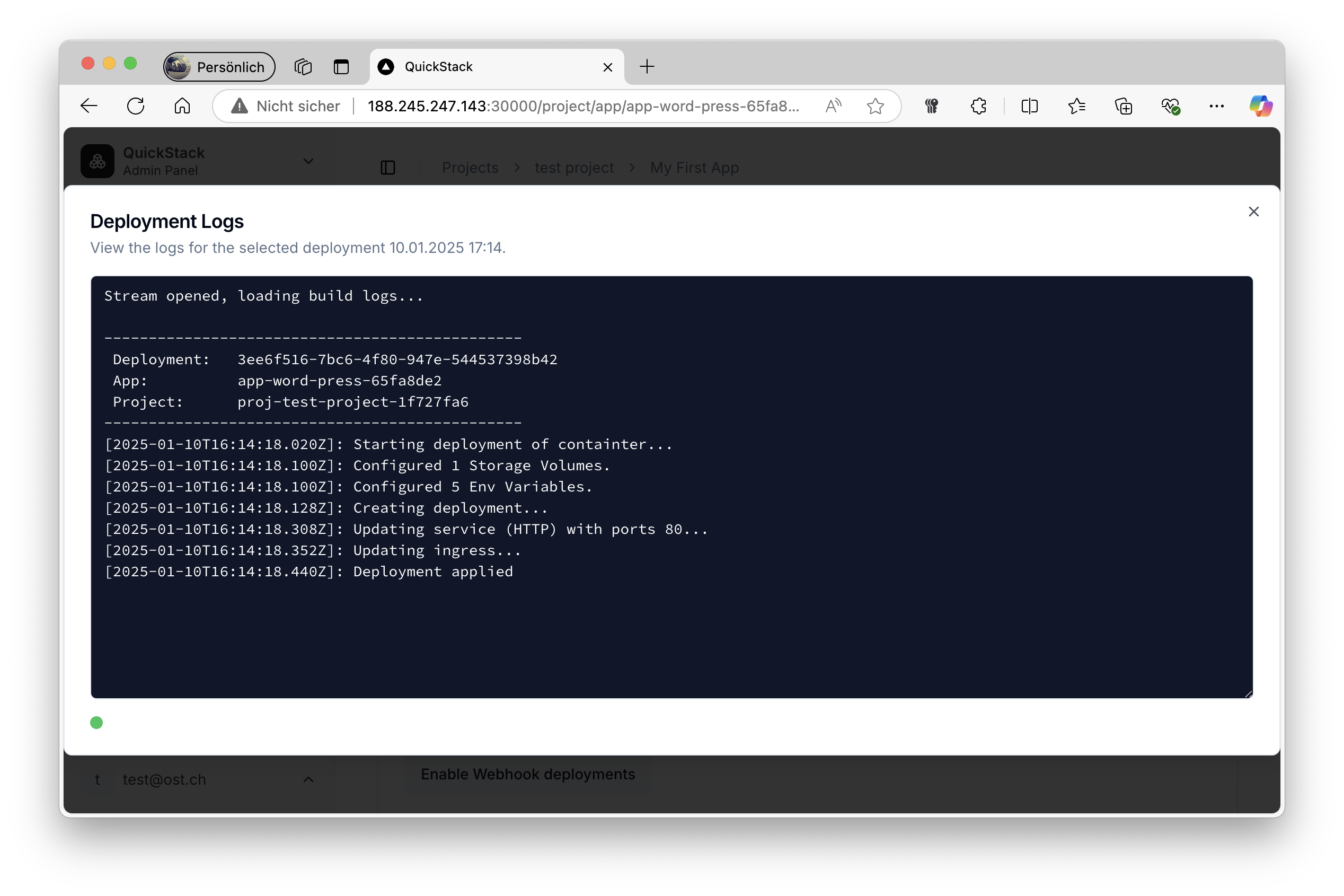 - QuickStack installed (installation guide)