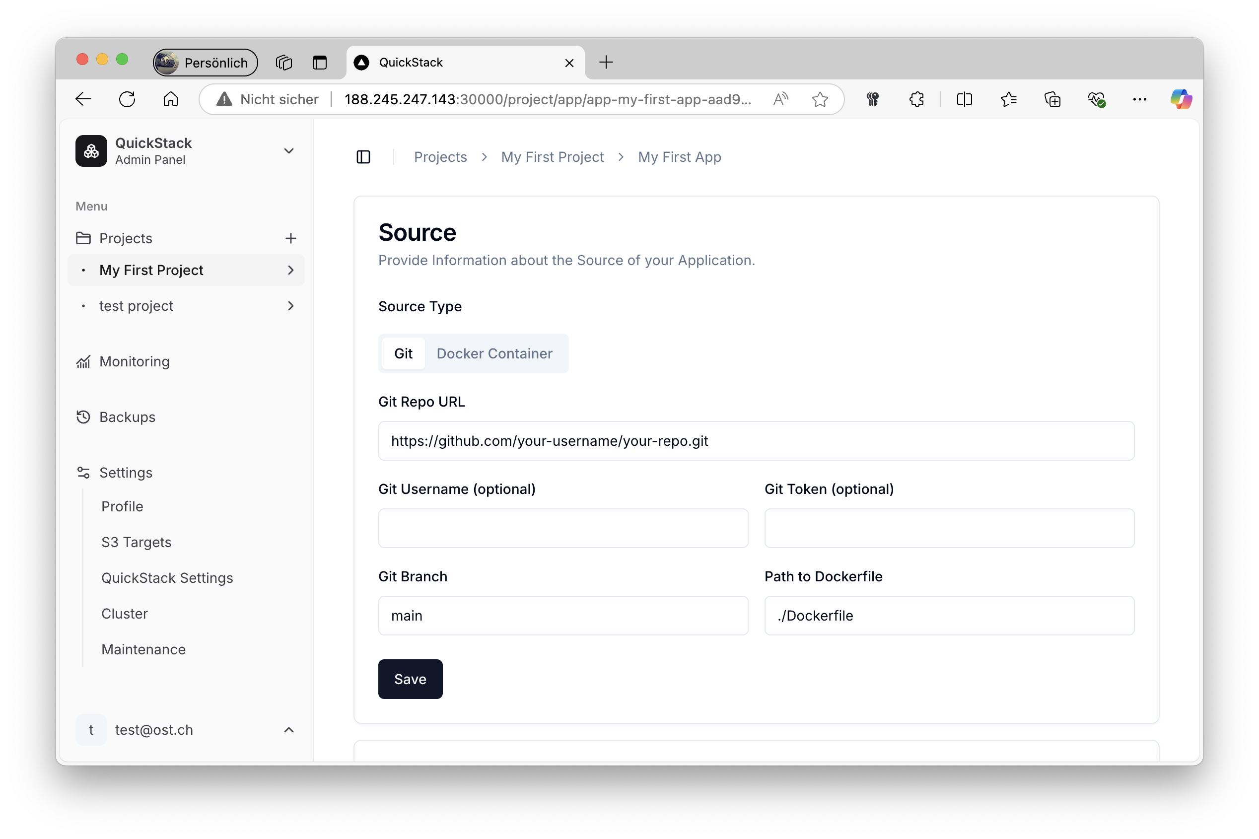 Deploy an application directly from a Git repository using QuickStack.